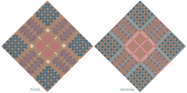 The traditional Welsh design is a double weave which means that they are reversible. There are fringes (approx 5cm/2.5") on the longer sides and selvedges top and bottom.